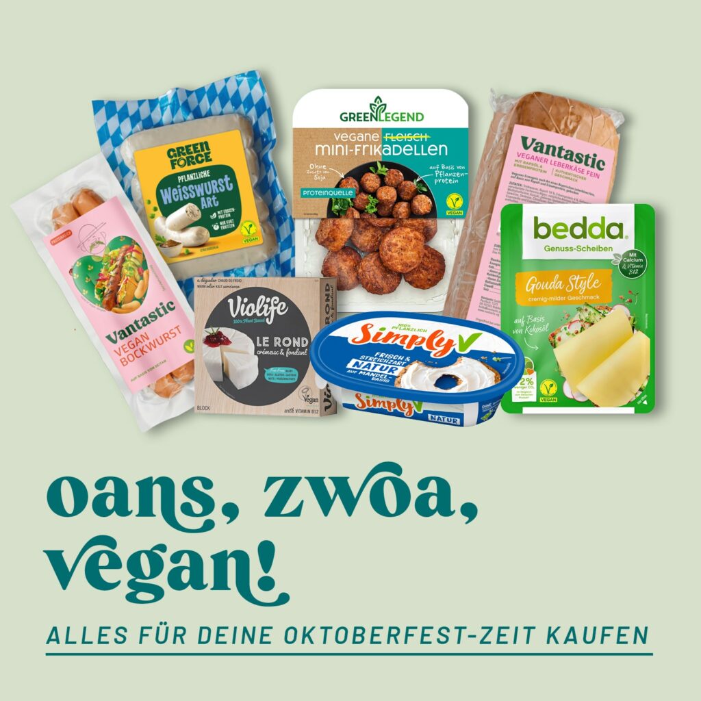 Für alle, die zuhause veganes Oktoberfestfeeling zaubern wollen, probiert mal unsere vegane Wies’n-Bowl mit Schwammerl und Serviettenknödel oder eine vegane Oktoberfestbrotzeit.