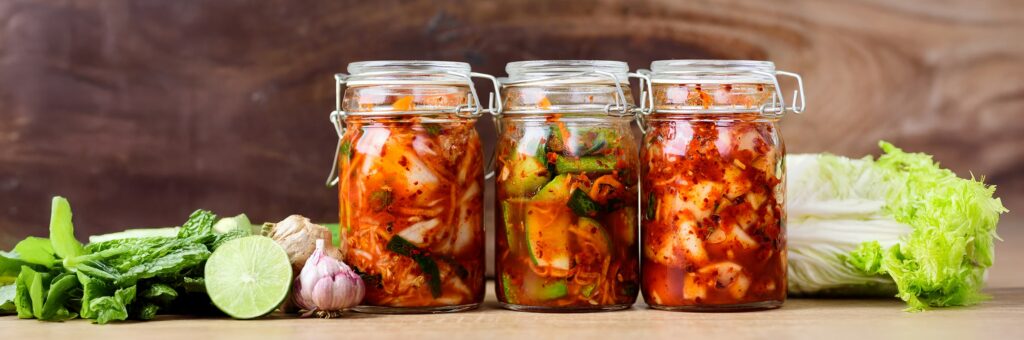 Like domestic sauerkraut, Korean kimchi is produced by fermentation processes. The little helpers in this process are microorganisms such as healthy bacteria, fungi or yeasts. They convert carbohydrates or natural sugars found in food into lactic acid or alcohol. This acid in turn inhibits the spread of other bacteria and thus stops rotting and decay. This is the age-old trick for preserving foods such as vegetables. In the old days, this was used to store provisions during the winter so that food rich in vitamins was also available during the cold season. And all without preservatives!