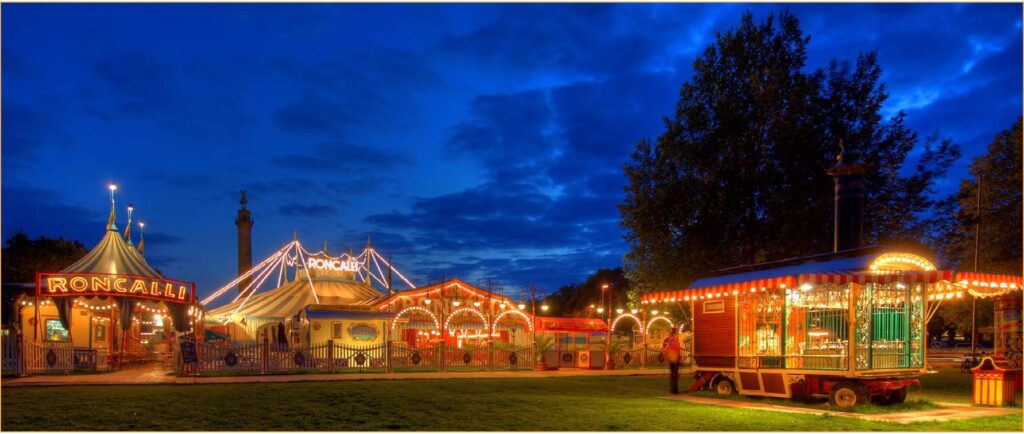 Dies beginnt schon beim Betreten des nostalgisch umhauchten Zirkusgeländes, das mit seinen original restaurierten Zirkuswagen und dem imposanten Zirkuszelt den Gast in eine Märchenlandschaft entführt. Gründer Bernhard Paul hat auf jedes Detail seiner Roncalli Zirkuswelt geachtet. Plastikstühle wird man hier nirgends finden. Das verehrte Publikum darf in, mit echtem Mohair Stoff bezogenen Stühlen in der Loge Platz nehmen und sich wohlfühlen. Im Parkett bieten breite Holzbänke eine bequeme Sitzgelegenheit. Kostbares Blattgold verziert die